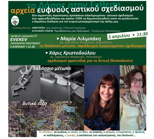 Στην επικείμενη δημόσια εκδήλωση οι σημαντικότατες ομιλήτριες και πολίτες της πόλης, η Χάρις Χριστοδούλου και η Μαρία Λιλιμπάκη θα επαναφέρουν και θα διαθέσουν δημόσια δύο ιστορικές ομάδες μελετών, μέρος του γενικού περιβαλλοντικού