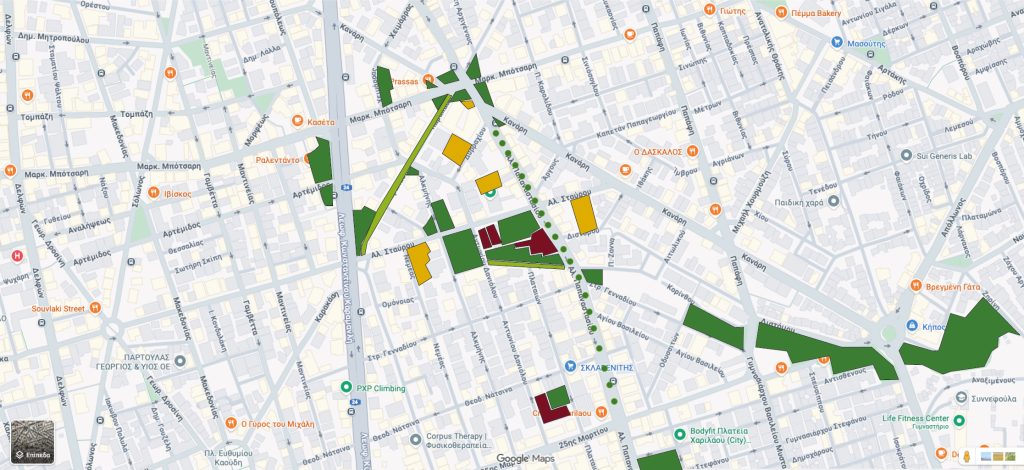 Μετά το οικόπεδο ΑΛΥΣΙΔΑ, πρέπει να κοιτάξουμε κριτικά και να διεκδικήσουμε την δενδροφύτευση της οδού Παπαναστασίου (από την διακλάδωση με την οδό Κανάρη έως την διασταύρωση με την οδό Μαρτίου αλλά και μετά το πάρκο Χαριλάου), την πεζοδρόμηση της οδού Καρακάση και την ισχυρή φύτευση δένδρων (από την Καραμανλή έως τον κόμβο Παπαναστασίου), τα τεμάχια κενού, χωρίς ταυτότητα, χώρου επί της οδού Αλεξάνδρου Σταύρου (δενδροφύτευση), την κατασκευή υπόγειου χώρου στάθμευσης-αποθήκευσης ιδιωτικών οχημάτων των κατοίκων της περιοχής, στο οικόπεδο Δανιόλου-Σταύρου-Αλκμήνης-Κορίνθου με υπέργειο κήπο ώστε να αποσυμφορηθεί το δίκτυο των γειτονικών δρόμων, την απομάκρυνση όλων των συνεργείων επισκευών αυτοκινήτων, την πεζοδρόμηση και δενδροφύτευση της οδού Κορίνθου, την στατική ανακαίνιση των υπολοίπων κτιρίων του οικοπέδου ΑΛΥΣΙΔΑ και την χρήση τους για μονάδα πρωτοβάθμιας περίθαλψης, ένα μικρό νοσοκομείο, δηλαδή, ή την καθαίρεσή τους και την κατασκευή κήπου-πάρκου.